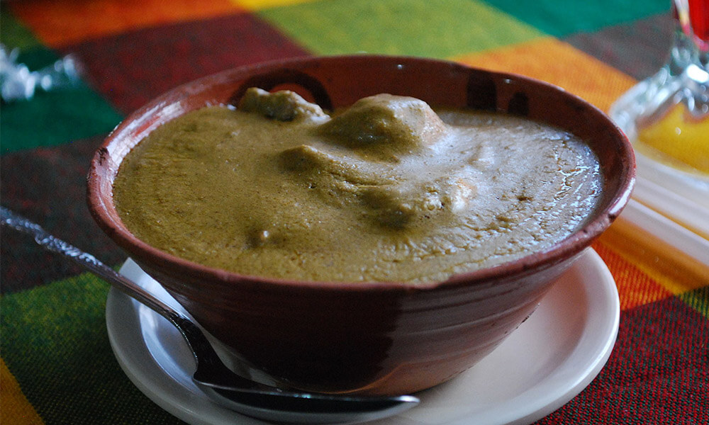 Creado originalmente en Chiapa de Corzo, el chipilín con bolita es un platillo muy tradicional del centro del estado. Es una apetitosa sopa preparada con una hoja local llamada chipilín y con bolitas de masa y manteca, elote, jitomate, queso fresco y crema. ¡De lo más rico que comer en Chiapas!