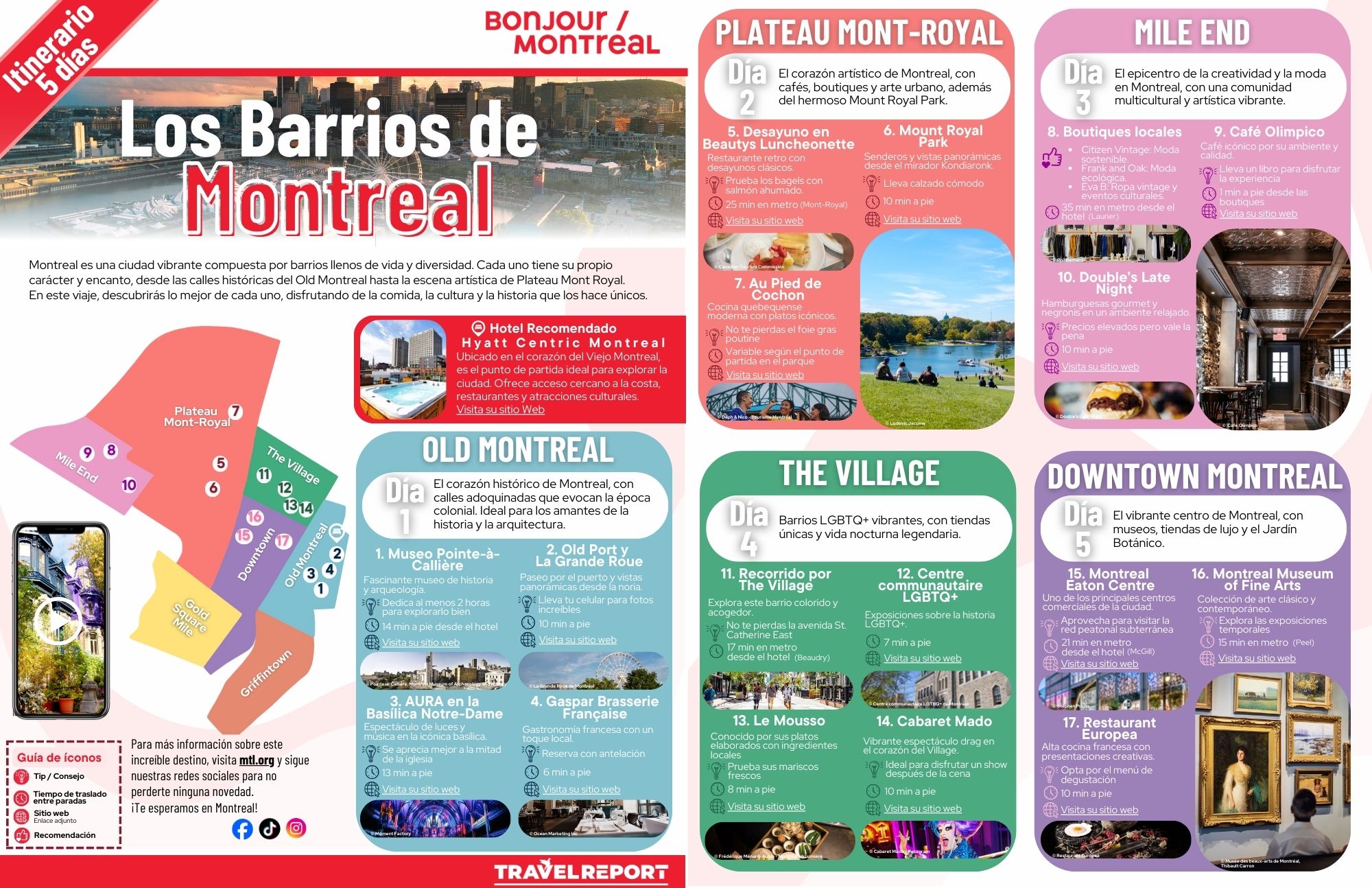 Descubre la Esencia de MontrealDesde las calles históricas del Old Montreal hasta la modernidad del Downtown, este itinerario garantiza una experiencia única. Encuentra más sobre los mejores lugares en los Barrios de Montreal en nuestras recomendaciones y vive la magia de esta ciudad única.