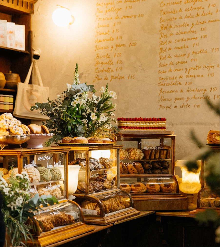 Hay panaderías en la Ciudad de México que incluyen una cafetería; otras, postres o galletas envueltas para llevar de regalo.
