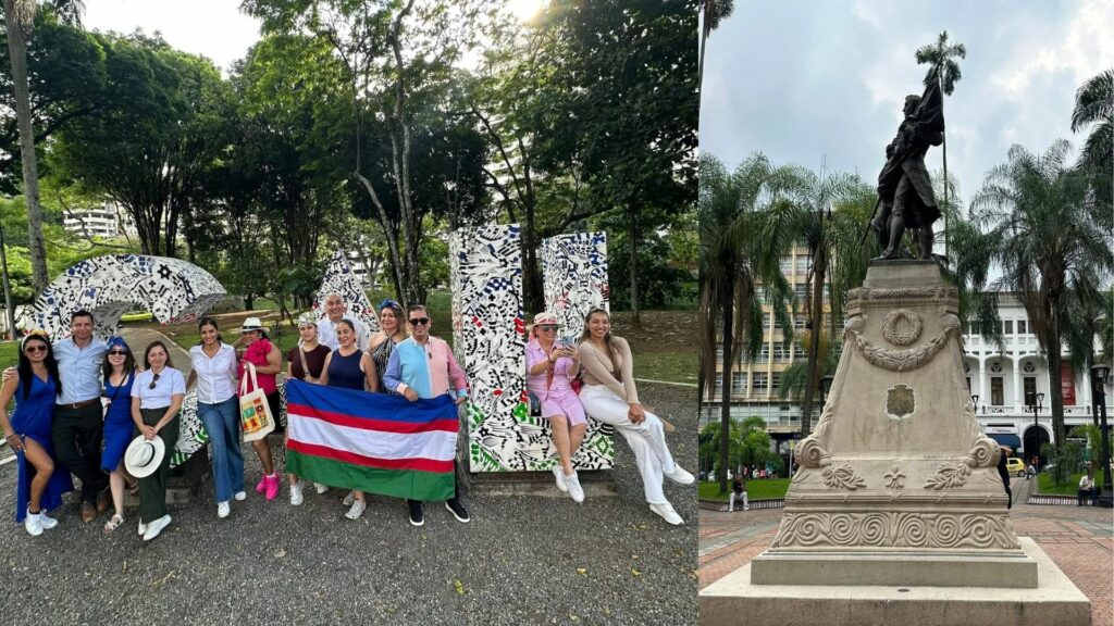 Empezamos el día junto a Mega Travel y Dorado Experiences quienes durante estos días nos han ofrecido experiencias super memorables e icónicas de Colombia, aquí en Cali nos sumergieron en el ritmo caleño con una visita al Museo Grupo Niche, un vibrante homenaje a la legendaria agrupación que ha llevado en alto el nombre de Cali por el mundo. Continuamos con un paseo por el Boulevard del Río, donde sentimos el pulso de la vida urbana y también admiramos la arquitectura de la Iglesia La Ermita y la Iglesia la Merced, más tarde recorrimos el barrio colonial de San Antonio, famoso por su encanto bohemio y la ruta nos llevó al pintoresco Parque de las Novias del Gato, un lugar lleno de arte y leyendas. Más tarde, vivimos una experiencia increíble con una hora de clase de salsa caleña, donde aprendimos los pasos básicos y conectamos sin duda con la energía y el sabor que ha convertido a este género musical en un símbolo de Cali. No podía faltar por supuesto la visita al impactante Monumento a Cristo Rey, una estatua de 26 metros de altura ubicada en el Cerro los Cristales, llamado así debido a la gran cantidad de cuarzos que había en ese lugar, Dorado Experiences no solo nos llevo a conocerlo también nos tomo la foto grupal mas genial que hayamos podido imaginar.
