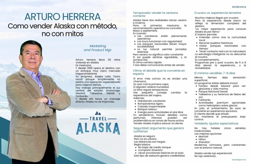 Arturo Herrera lleva 30 años viviendo en Alaska es mexicano y desde 1999 opera el destino con un enfoque muy claro: mercado hispanohablante.