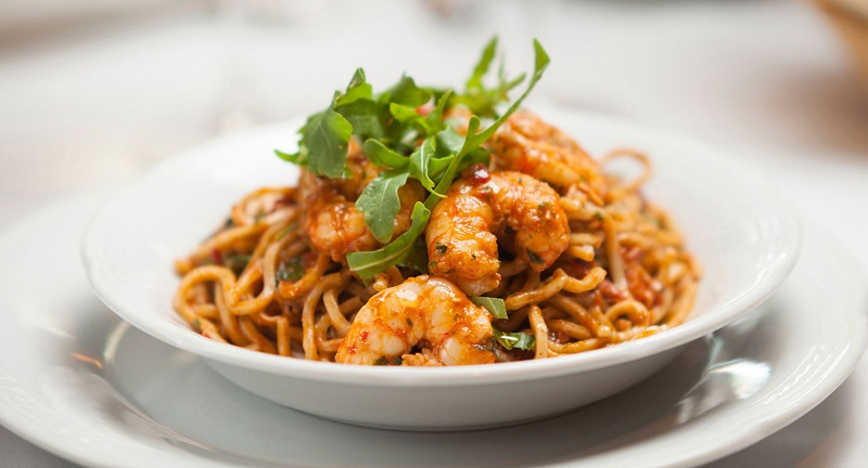 Entre las opciones están el espagueti con camarón, rúcula y tomates secos y el tallarín con tomate, berenjena y albahaca.