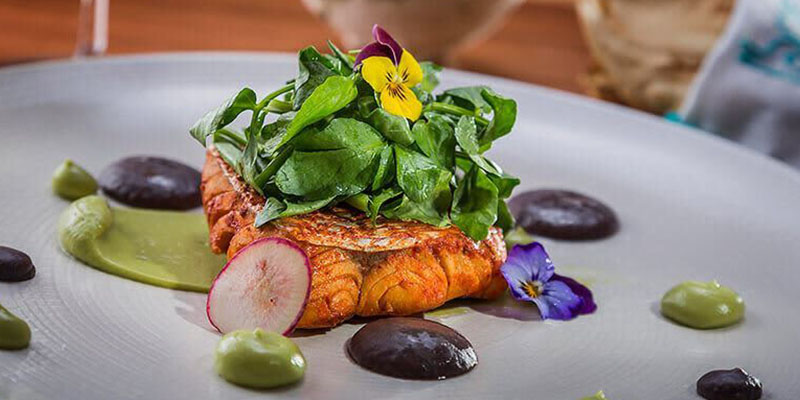 Sus platillos inspirados en los sabores de Latinoamérica son frescos y contemporáneos, con un equilibrio magnífico de mar y tierra.