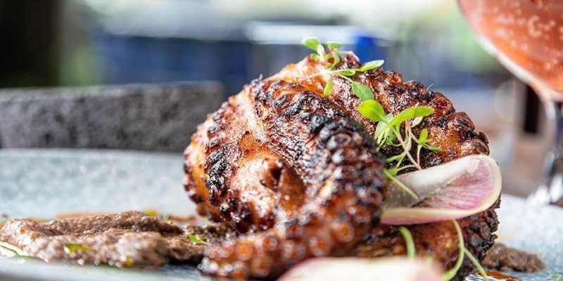 El pulpo al grill servido con una salsa de frijol con chile de árbol, es otro de los imperdibles. Y es que su combinación de ingredientes en total equilibrio, provoca una explosión de sabores inigualable.
