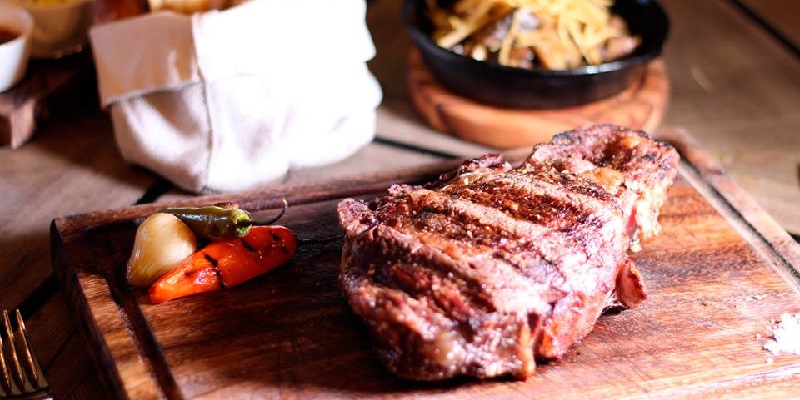 En el restaurante Gardela la carne es asada a fuego intenso con carbón o leña. Con este método de cocción se logra un corte dorado con una costra que lo dota de sabor.