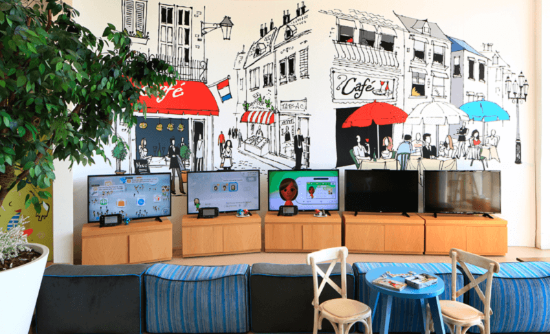 Con murales y muebles repletos de colores este espacio es ideal para divertirse y hacer amigos.