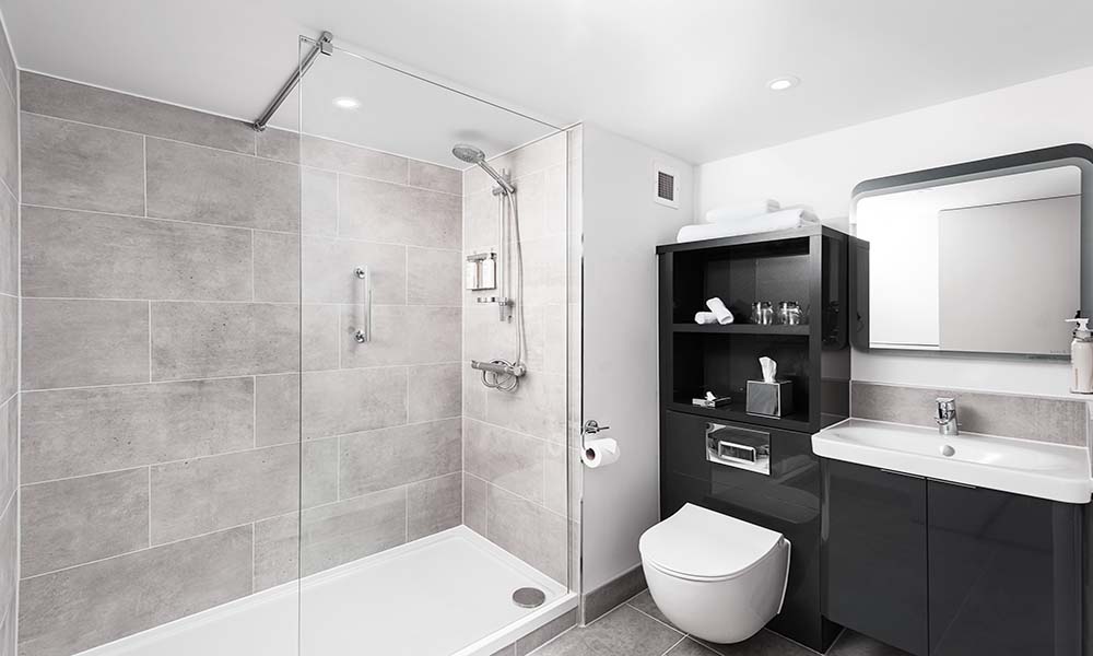 Así lucirán los baños en Avid Hotels.