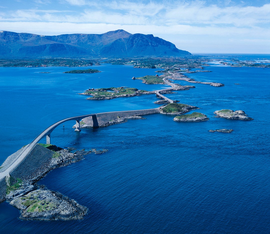 Conducir por esta vía, que une islas e islotes, permite admirar fiordos, islas, montañas, bosques y pintorescos poblados.