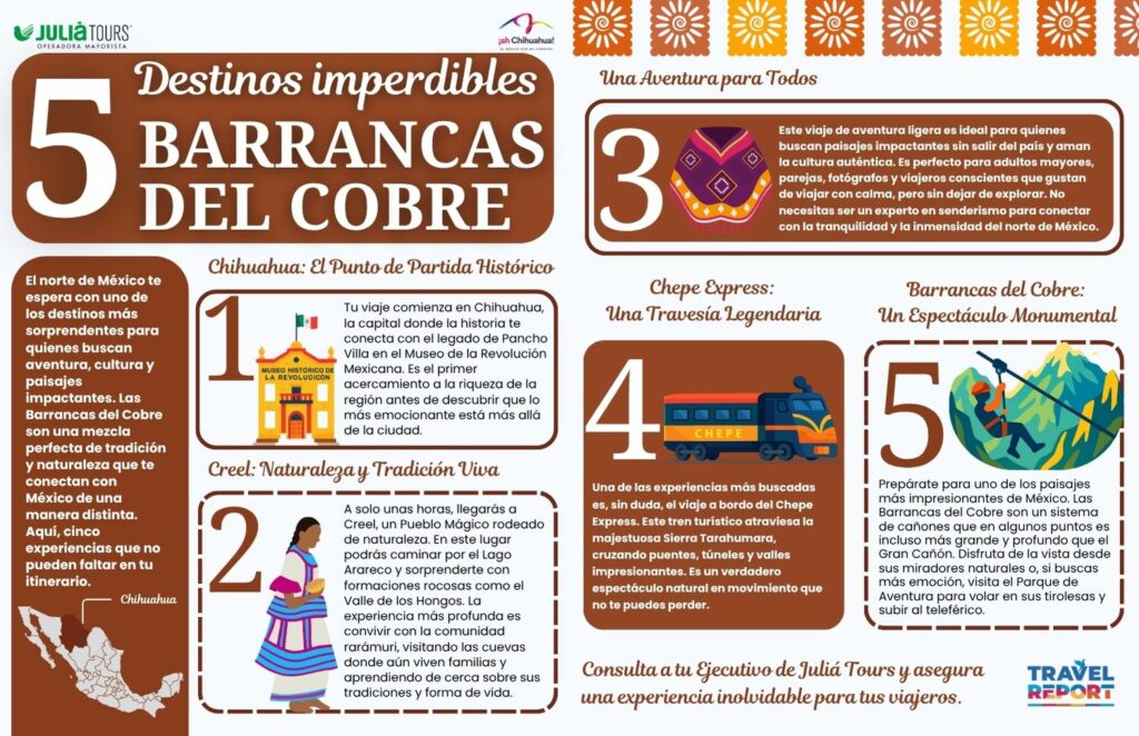 El norte de México te espera con uno de los destinos más sorprendentes para quienes buscan aventura, cultura y paisajes impactantes. Las Barrancas del Cobre son una mezcla perfecta de tradición y naturaleza que te conectan con México de una manera distinta. Aquí, cinco experiencias que no pueden faltar en tu itinerario.