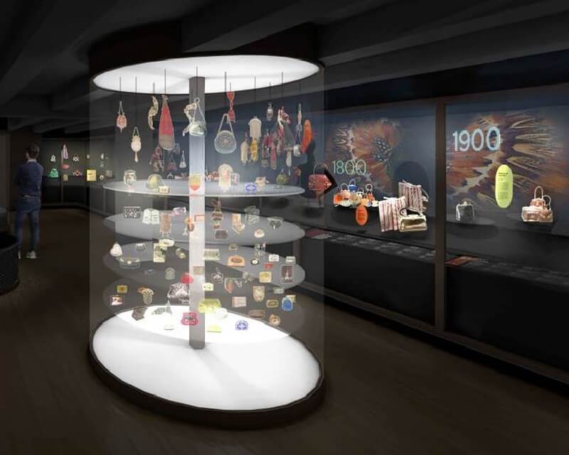 Además de tu colección histórica de bolsos, monederos y maleteros, tiene exposiciones de diseñadores contemporáneos.