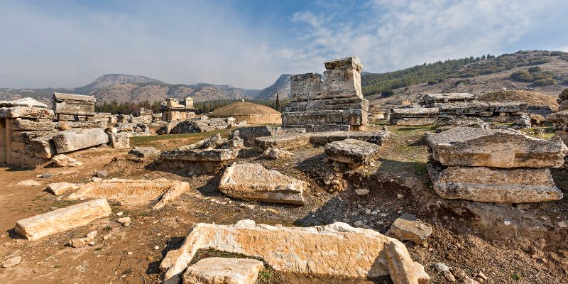 Declarado en 1988 Patrimonio de la Humanidad, Pamukkale mantiene también en la parte superior la ciudad de Hierápolis con diversas construcciones, entre las que destacan el Templo de Apolo, los baños termales, puertas monumentales y la Necrópolis y el Anfiteatro.