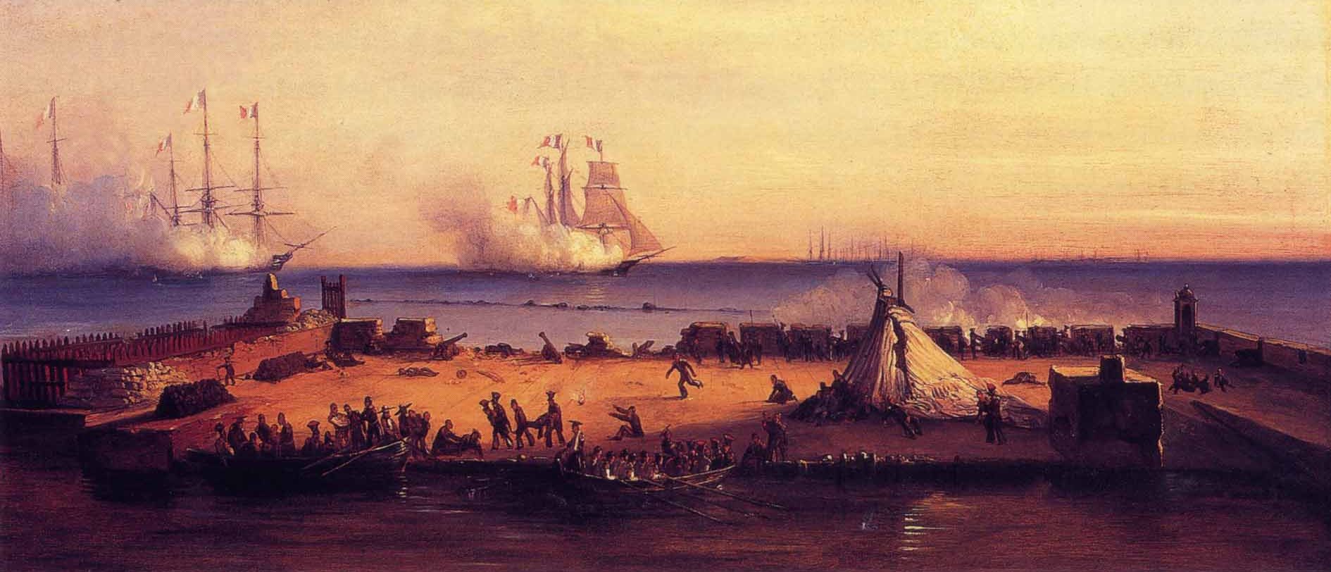 Y entonces México dijo: Están mal mis chavos, negándose a pagar esa cantidad. Así que Francia determinó que la conocerían por las malas y la flota francesa abrió fuego contra el fuerte de San Juan de Ulúa (batalla de San Juan de Ulúa) y el puerto de Veracruz el 21 de noviembre de 1838.