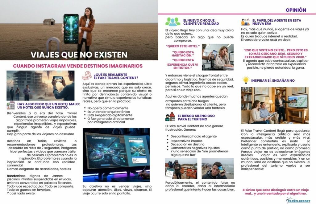 Bienvenidos a la era del Fake Travel Content, ese universo paralelo donde los algoritmos prometen viajes imposibles, experiencias irrepetibles… y expectativas que ningún agente de viajes puede cumplir.