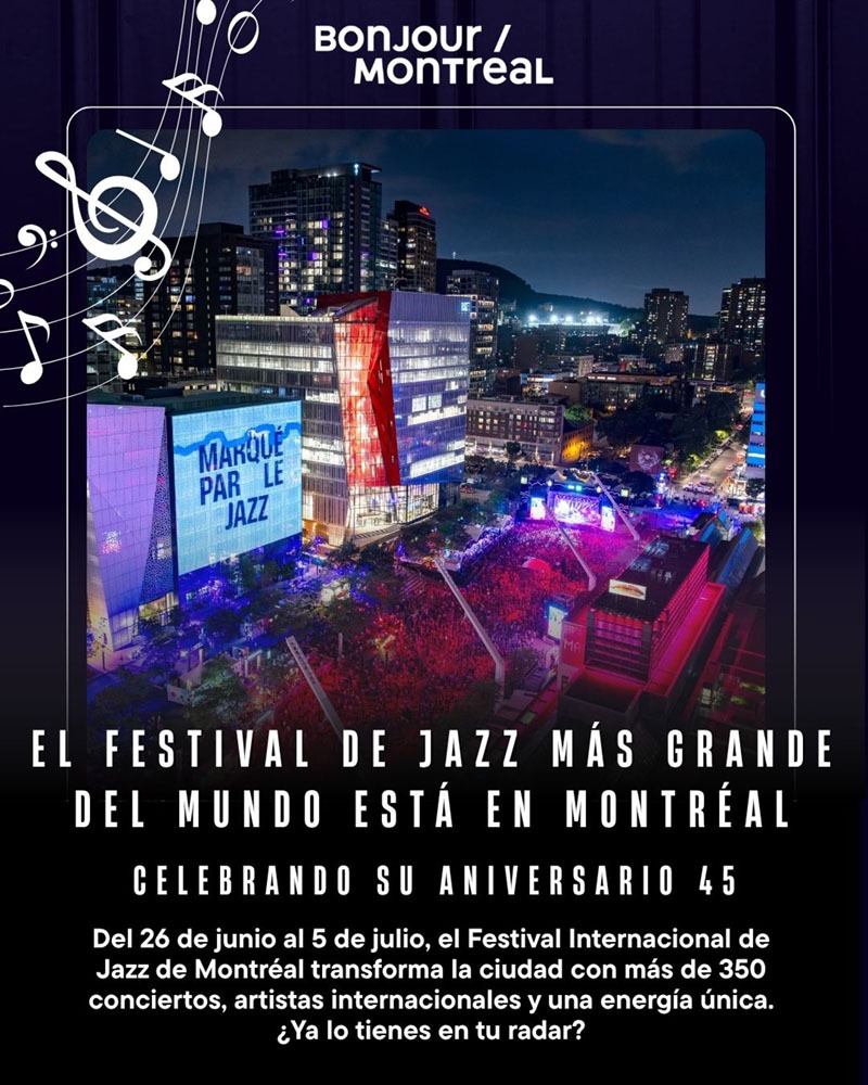 Tras 45 ediciones y más vibrante que nunca, el Festival Internacional de Jazz de Montréal regresa para conquistar una vez más las calles, los escenarios y el alma de la ciudad con más de 350 conciertos, 3,000 artistas de todo el mundo y una asistencia esperada de más de dos millones de personas. El evento se llevará a cabo del 26 de junio al 5 de julio de 2025, con decenas de espectáculos gratuitos que transformarán el Quartier des Spectacles y el Place des Festivals en un epicentro de celebración y cultura.