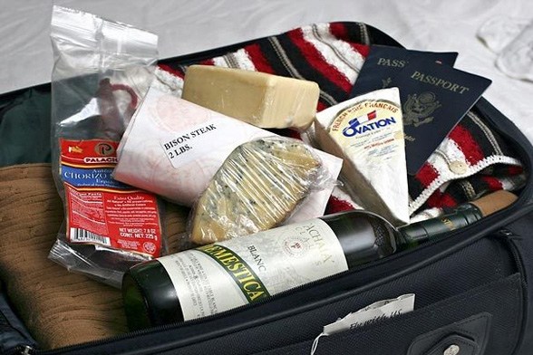 - Jamón serrano o paletas maduradas provenientes de plantas autorizadas por la Sagarpa. Se permiten hasta 5 kilogramos si son paquetes individuales o una paleta (entera y en su empaque original) por familia.