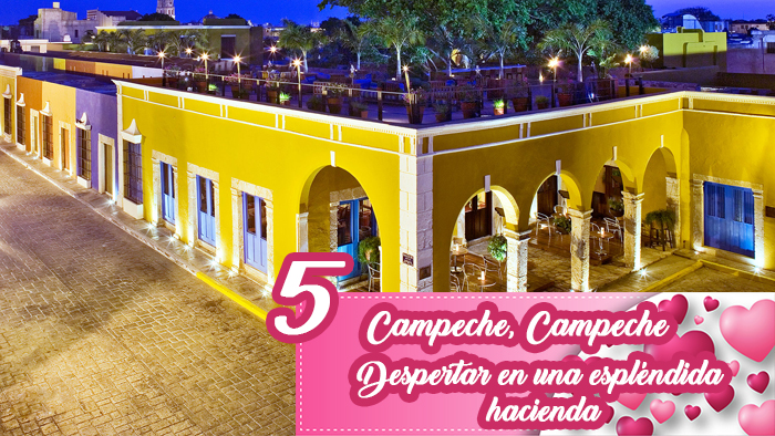 Las haciendas de Campeche brindan espacios majestuosos y únicos, un excelente servicio y una experiencia única entre enormes patios, jardines y habitaciones que los harán sentir en el pasado. Poseen maravillosas piscinas y pocas suites, lo que favorece a la intimidad de las parejas. Además, en sus restaurantes ofrecen deliciosa gastronomía regional. Uayamón, Puerta Campeche y Blanca Flor, consienten a los enamorados todos los días del año.