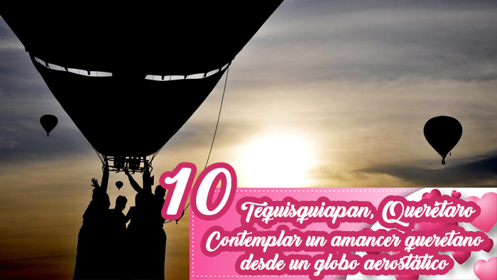 Deberán levantarse muy para vivir experiencia romántica. Un gigantesco globo aerostático los estará esperando para llevarlos a volar sobre los viñedos de Tequisquiapan, los campos de siembra y la hermosa Peña de Bernal a 400 metros de altura. Al descender, podrán brindar con vino espumoso y si así lo contrataron, disfrutarán de un desayuno al aire libre.