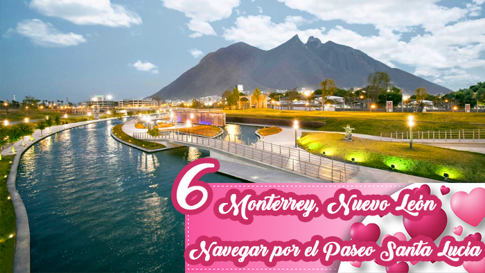 Los 2.5 kilómetros del Paseo de Santa Lucía que conecta a la Macroplaza con el Parque Fundidora de Monterrey, podrían recorrerse en bicicleta o a pie, pero la manera más romántica de hacerlo es a bordo de una pequeña embarcación, navegando lentamente sobre su canal, para pasar debajo de puentes y andadores, contemplando sus fuentes y los escenarios que se iluminan de noche. Al terminar el paseo, los estarán esperando algunos sofisticados restaurantes para ofrecerles una cena romántica en la terraza.