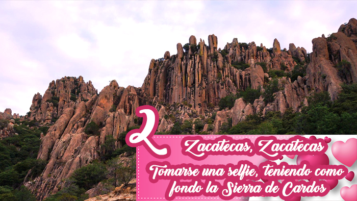 La Sierra de Cardos es un paisaje impresionantemente romántico, ubicado a unas dos horas de la ciudad de Zacatecas. Sus imponentes y amontonados riscos alcanzan hasta 2,850 metros sobre el nivel del mar, por lo que las selfies que se tomen en pareja, serán la envidia de muchos otros enamorados. Pueden además pasear en bicicleta, practicar rapel, lanzarse en tirolesa, caminar de la mano por su estrecho puente colgante y quedarse a dormir en una cabaña cercana.
