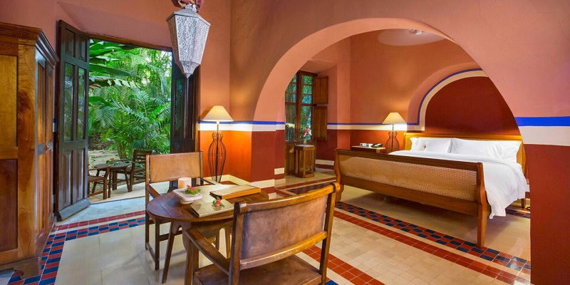 Actualmente, es un hotel de 11 habitaciones y cada espacio ha sido restaurado y adaptado, sin perder su arquitectura original. De hecho, se rescataron algunas técnicas mayas de construcción y se utilizaron materiales similares que solían cubrir sus techos, muros y suelos.