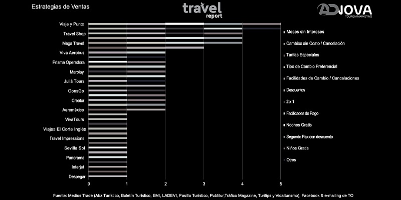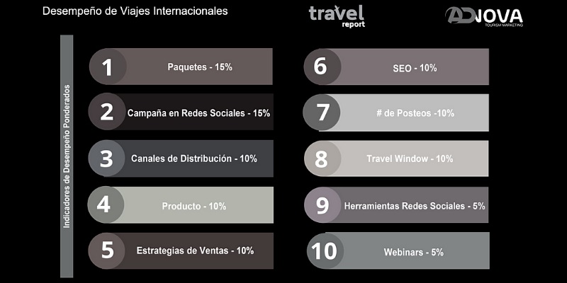 La carrera por tener mayor presencia en el mercado, es cada vez más agresiva. Con base en el índice desempeño de los viajes internacionales de México, estamos observando que los indicadores de desempeño que muestran la actividad promocional de los viajes internacionales, se siguen concentrando en ofrecer paquetes turísticos atractivos, promover importantes campañas en redes sociales, fortalecer sus canales de distribución, sobre todo en forma digital, promoviendo productos diversificados y relacionados con actividades culturales y de esparcimiento al aire libre.