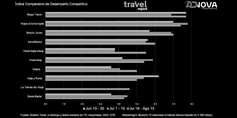 Este eficaz comportamiento competitivo de los principales jugadores de la industria turística, se muestra en la tendencia que han mostrado en los últimos dos meses.